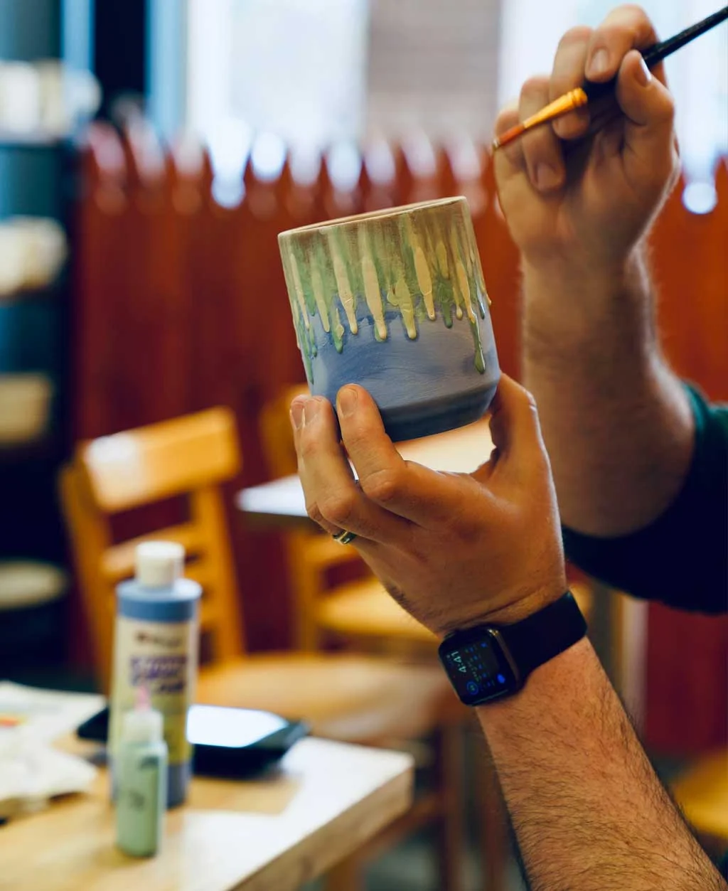 Walk-ins welcome Monday–Friday. For weekend and holiday pottery painting sessions, reserve your spot on our website.