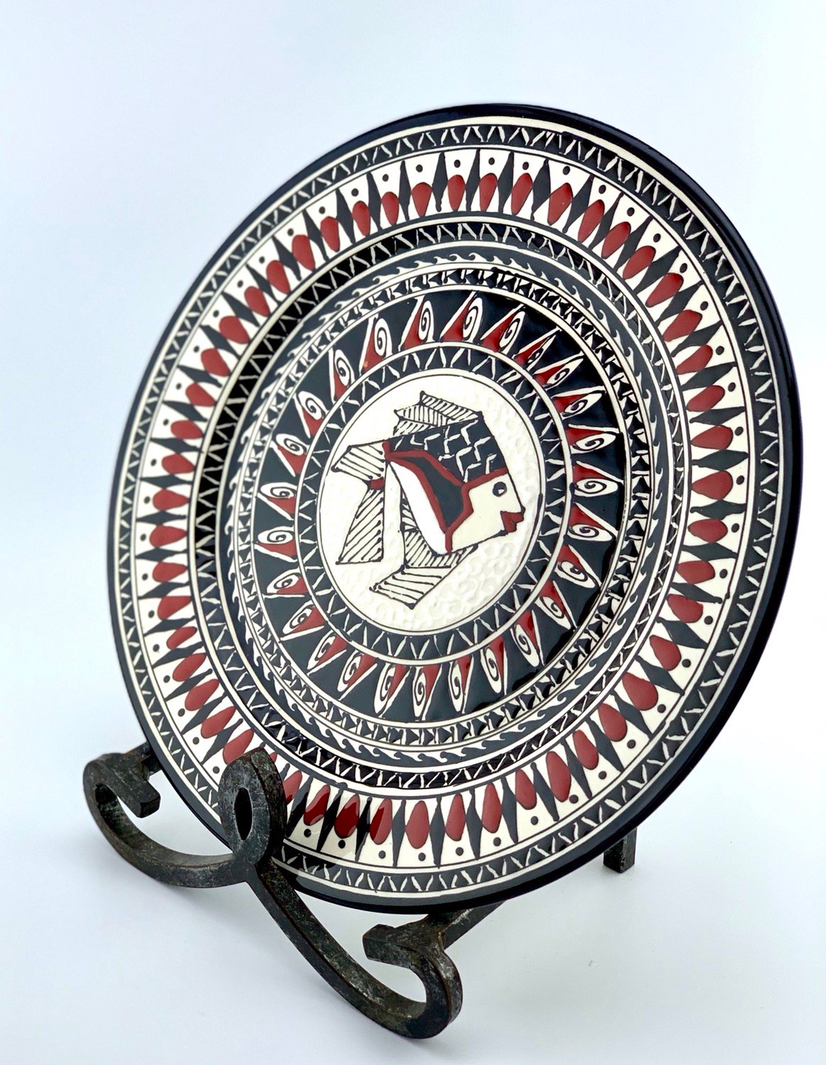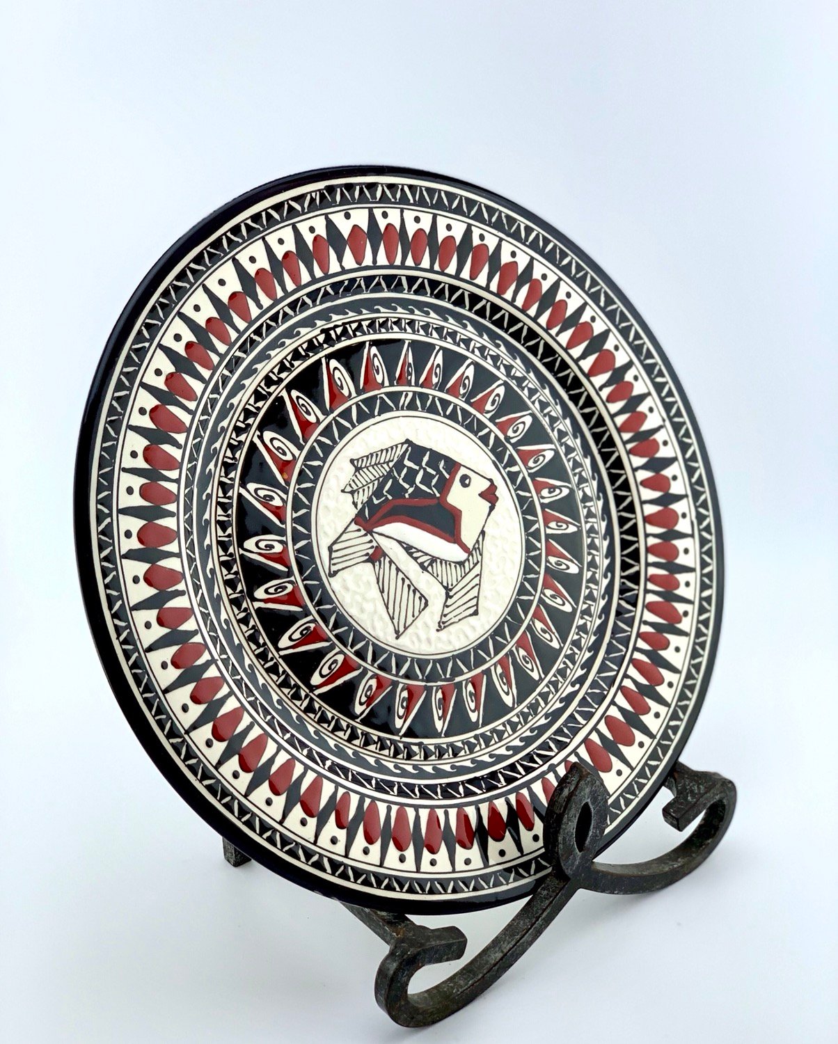 11.5″ L plateHand-designed plate, designed in Black and white historical . dishwasher safe and microwave safe. one of a kind and unique Best gift for housewarming. We started painting when we were living in the caves. We decorated all walls with geometric shapes. Animal figures were the first figures we ever painted. Hunting animals was the only story we had by then.