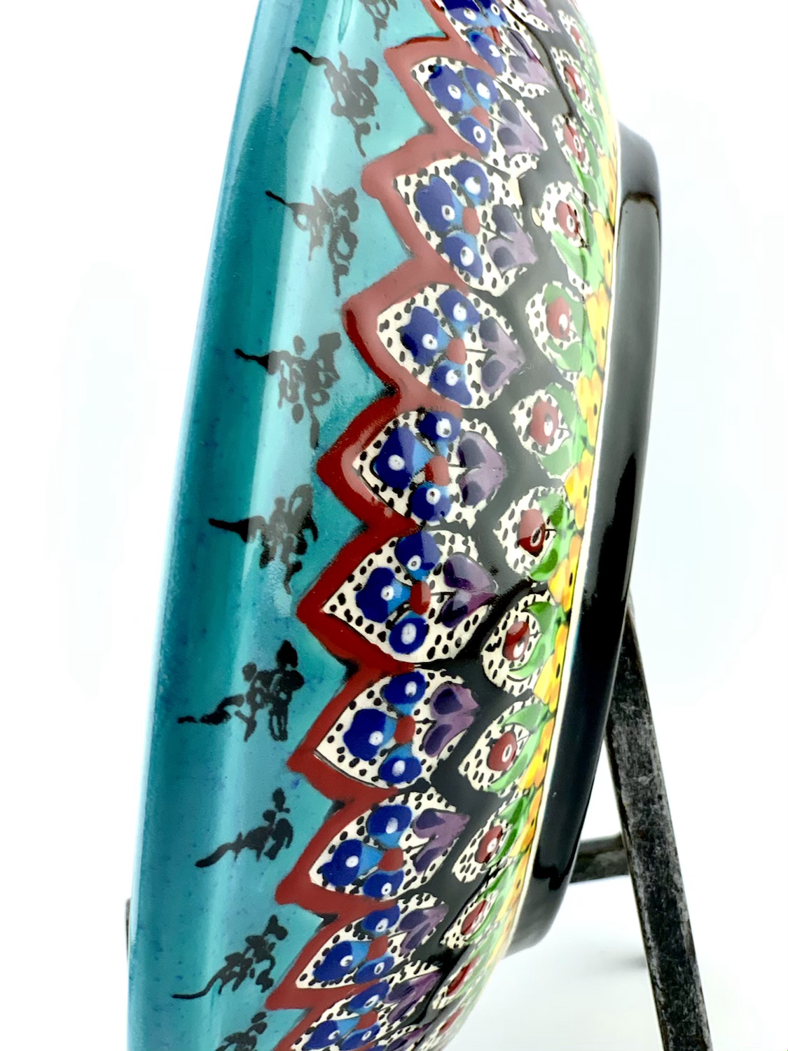 The Round Pasta Bowl was made for Italian dinners.Designed in our garden style. all Freehand. Dishwasher and microwave safe. one of a kind. 12½” Dia. x 3″ H