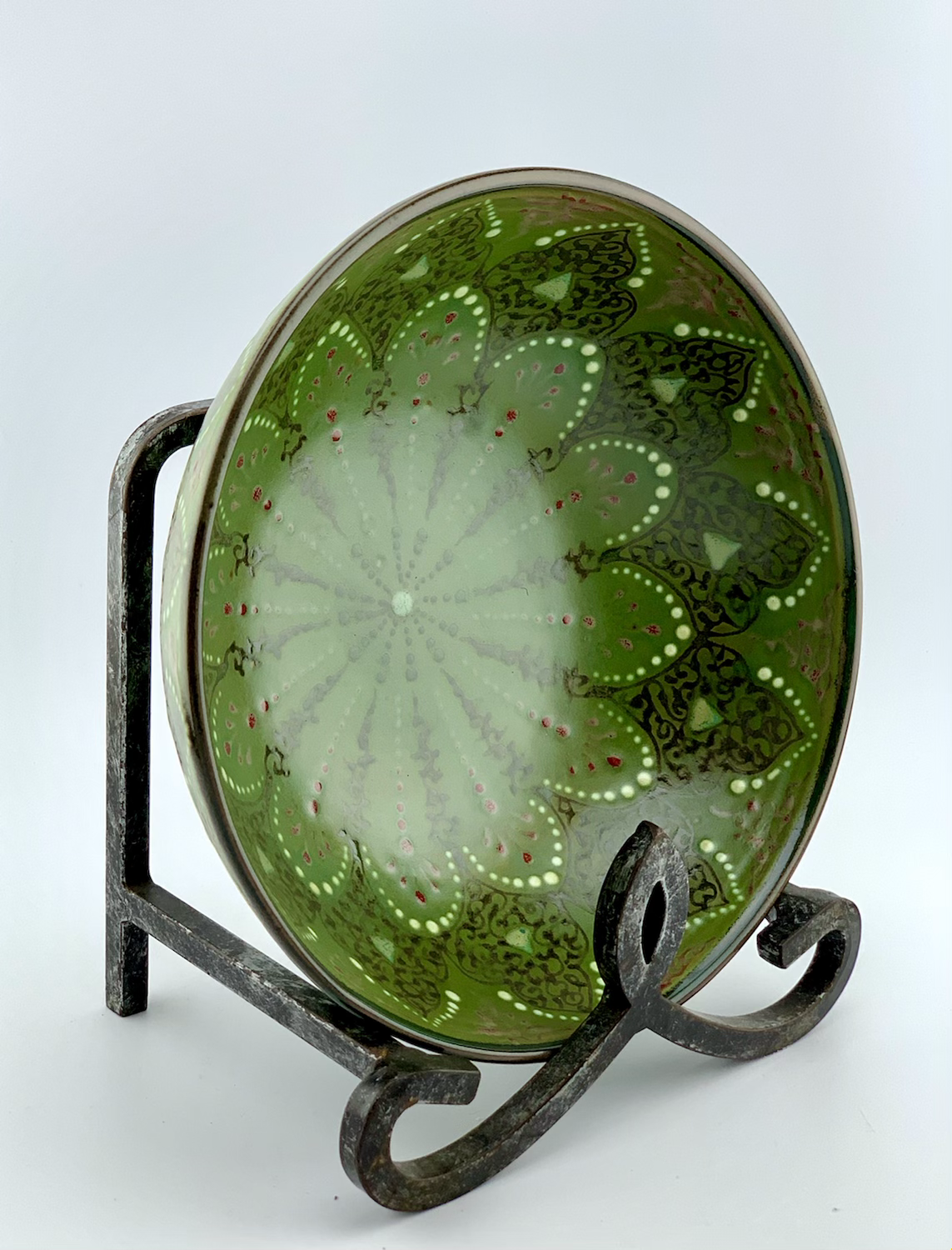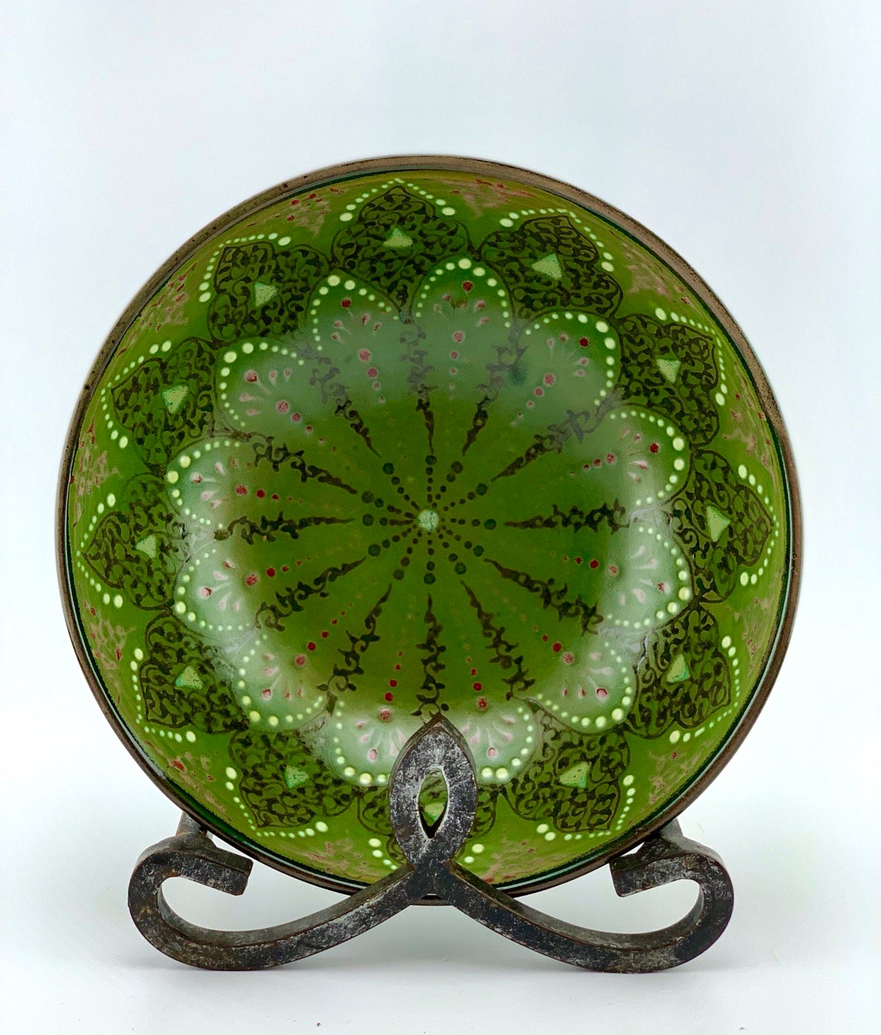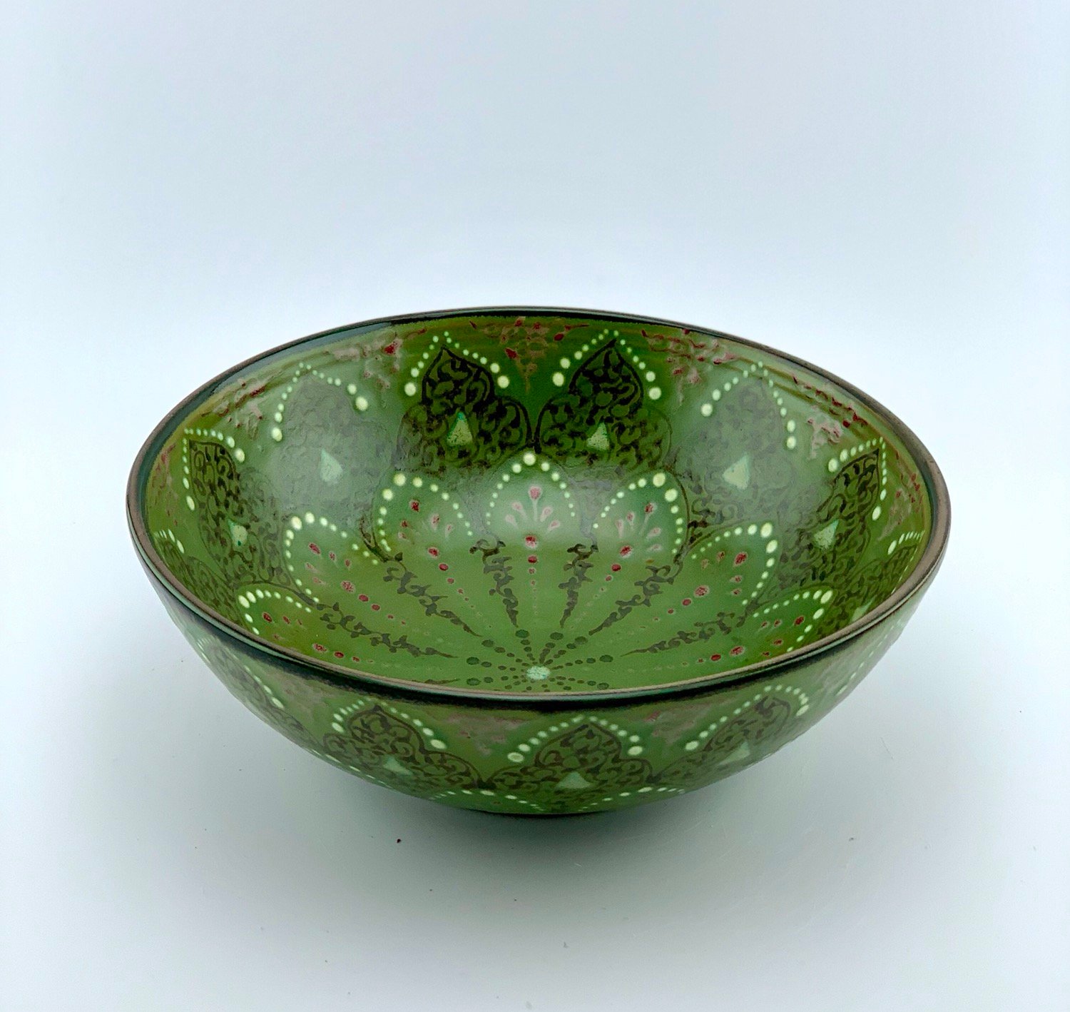 9” W. 3.25 H green bowl Hand-designed and glazed in traditional green design. All freehand, dishwasher and microwave safe. best gift for your beloved ones.  eating out of any turquoise and natural color plates makes you calm and it helps digest better.