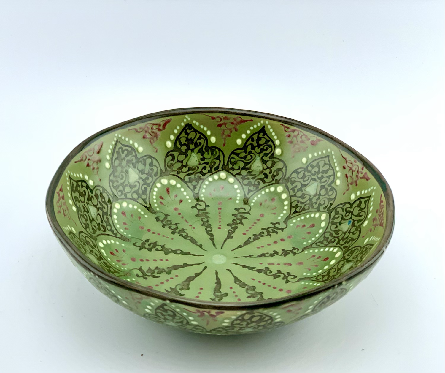 8” W .2.5 H Bowl Hand-designed and glazed in traditional green design. All freehand, dishwasher and microwave safe. best gift for your beloved ones.  eating out of any turquoise and natural color plates makes you calm and it helps digest better.