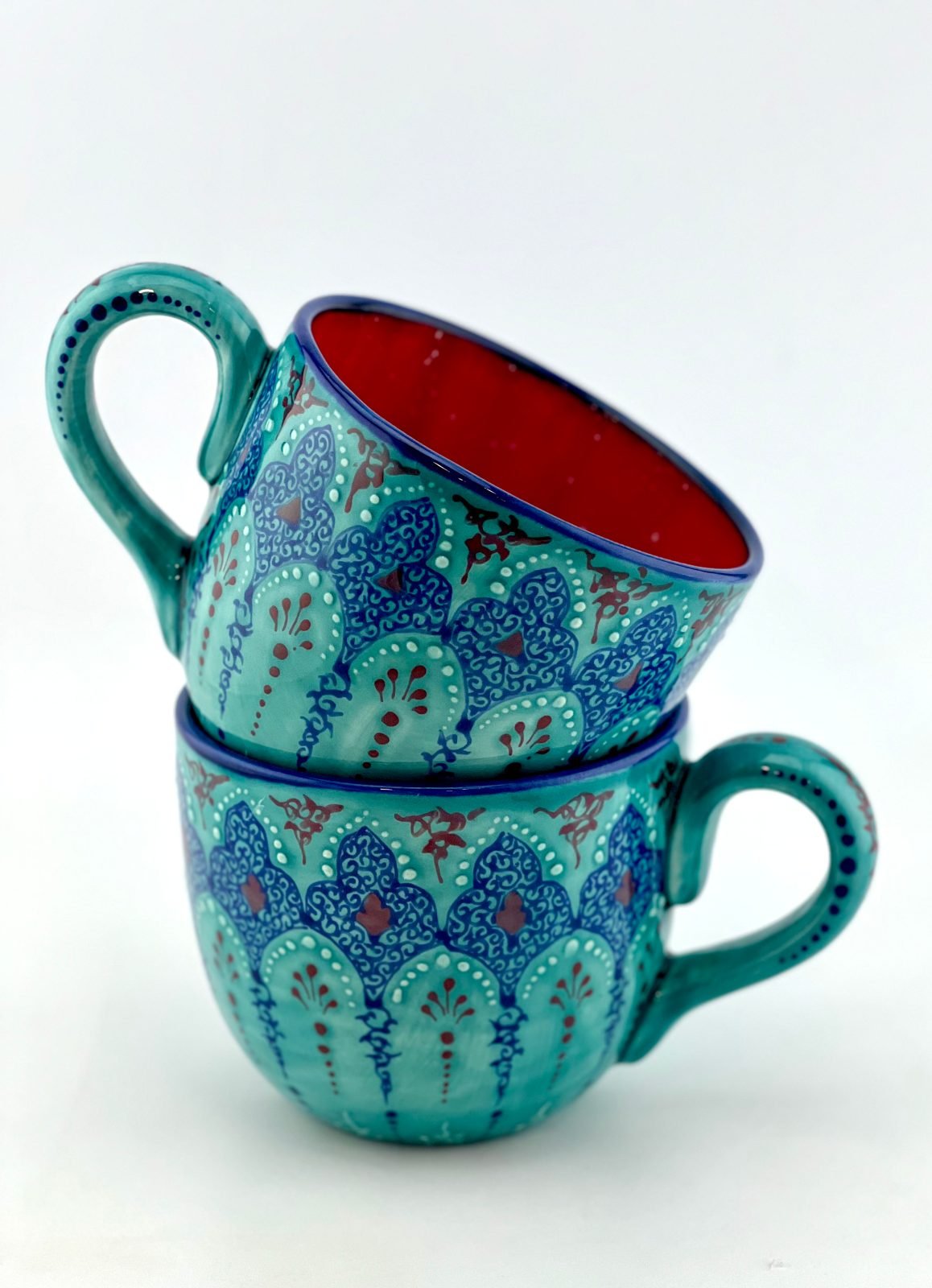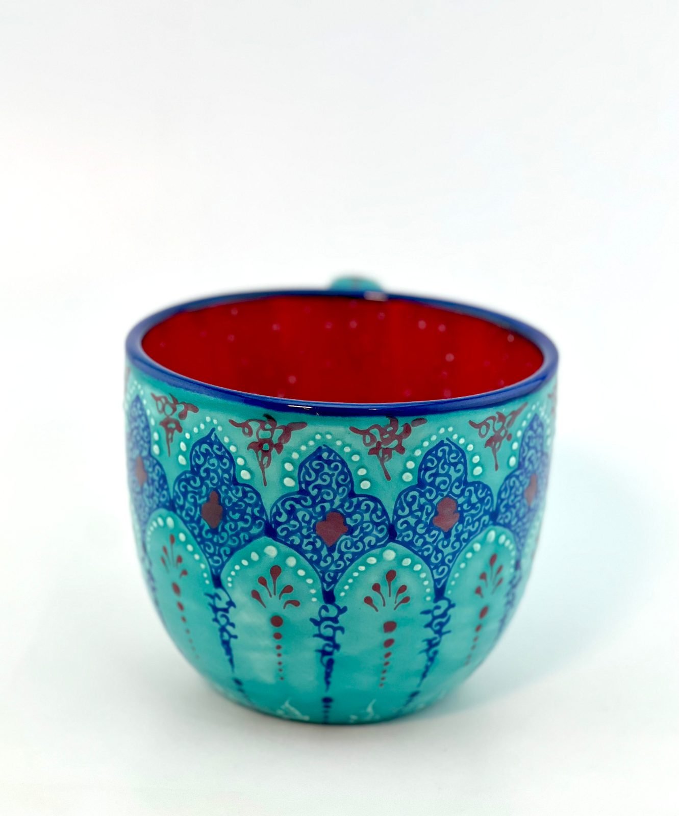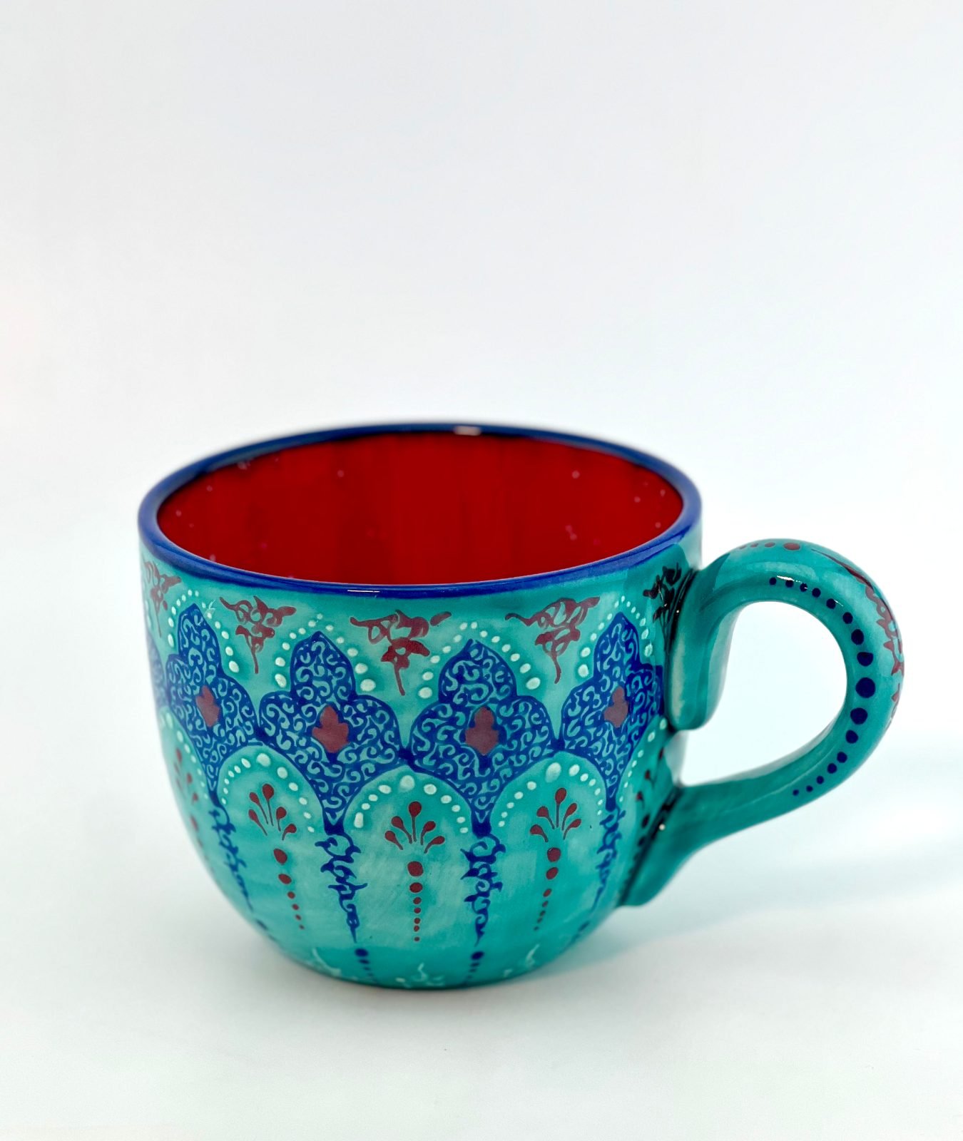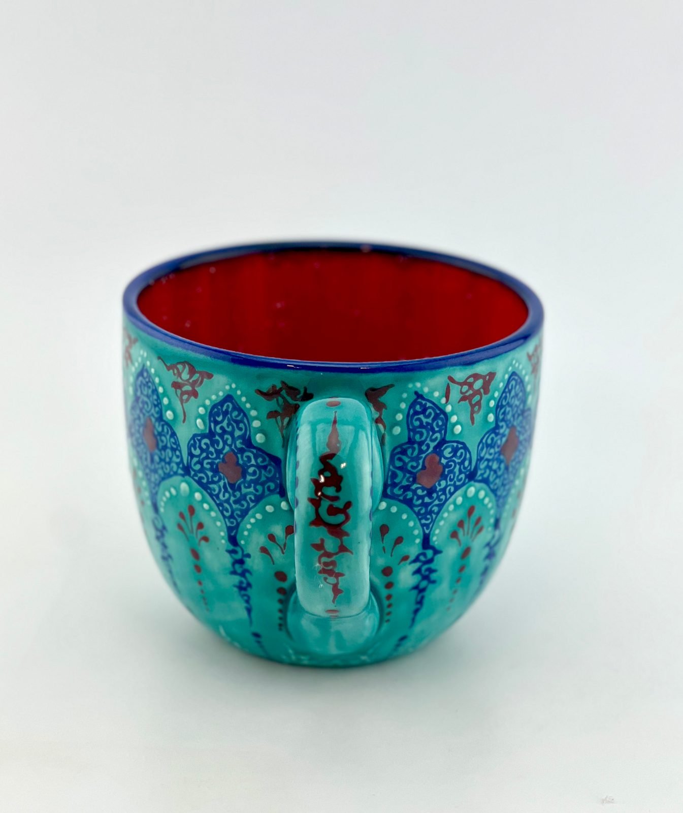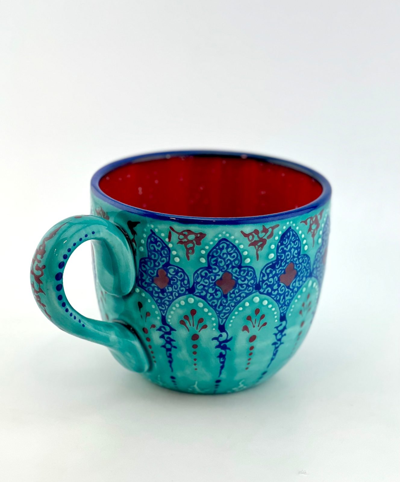 Hand-painted mug in the Traditional turquoise design. One-of-a-kind and completely dishwasher safe and microwave safe. Great gift for your moms or all your beloved ones.