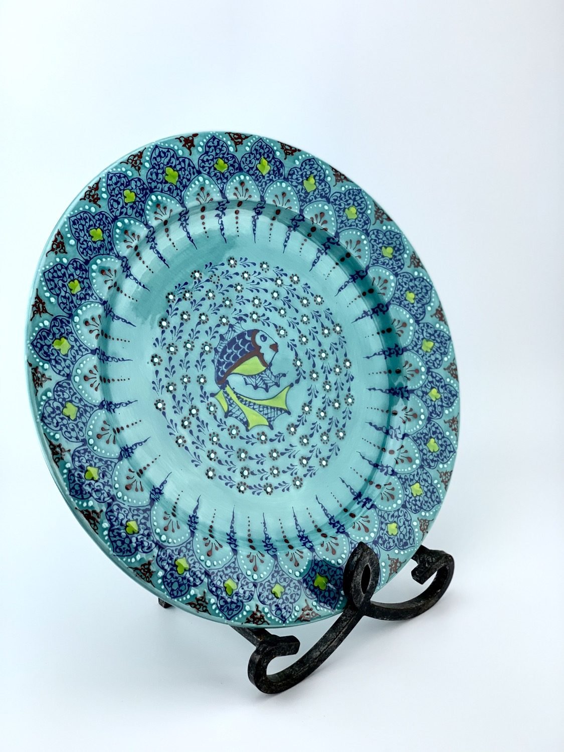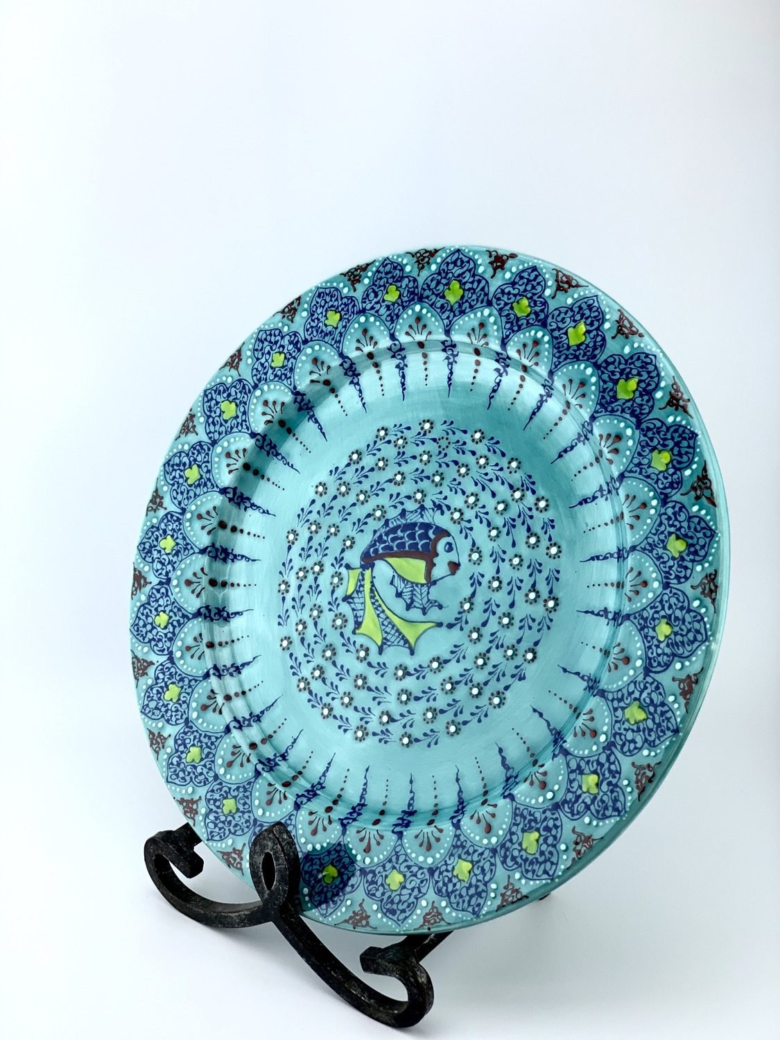 Hand-designed and glazed in traditional turquoise design. All freehand, dishwasher and microwave safe. best gift for your beloved ones.  eating out of turquoise and blue makes you calm and it helps digest better.