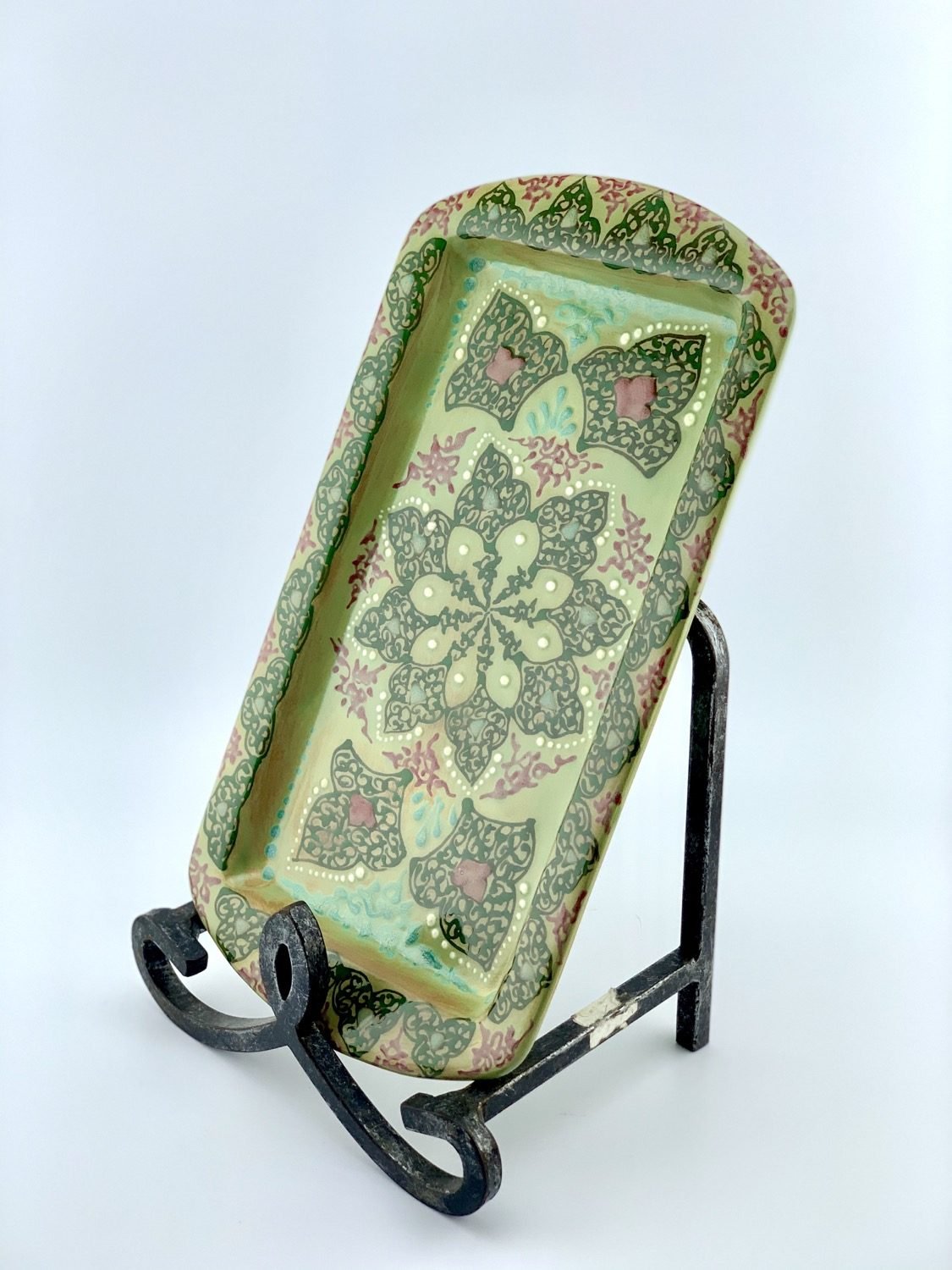 Hand painted and glazed tray Turquoize green design. best gift for your moms. grate for every new house. could be a best gift for every wedding.